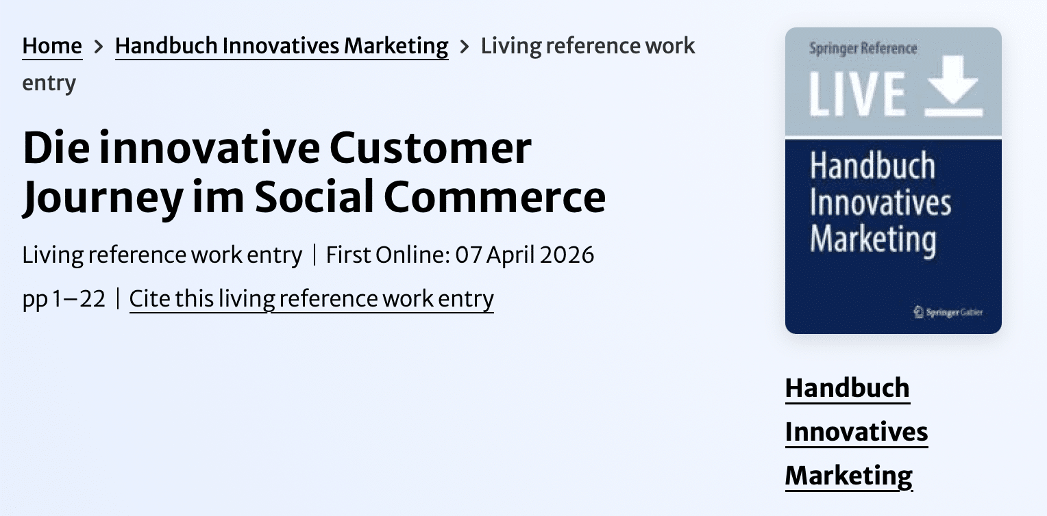 - Published in the “Handbuch Innovatives Marketing” (Handbook of Innovative Marketing) by Springer Fachmedien Wiesbaden (2026).